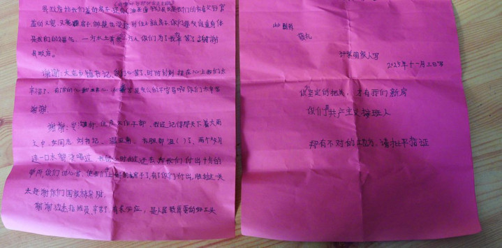 12月9日,坐在滦平县大屯镇岑沟村村民于桂兰宽敞明亮的家中,包村干部孙相宜从口袋里掏出了那封写在红纸上的感谢信。